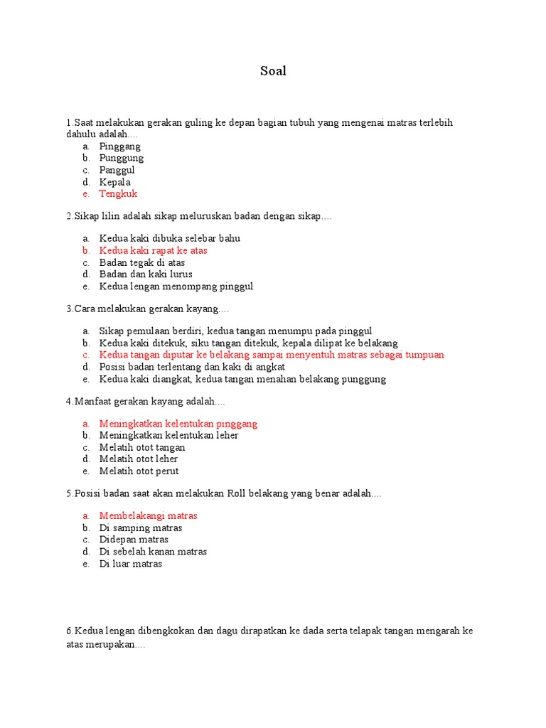 Gymnastic Other Quiz Quizizz from quizizz.com Senam lantai sikap lilin sendiri merupakan gerakan senam yang dilakukan di atas matras dengan gerakan kaki tegak berada di atas, sedangkan kepala berada dibawah seperti lilin. Nah selanjutnya kita akan membahas mengenai manfaat dari sikap lilin ini. Sedangkan gerakan sikap lilin yang salah adalah pinggang hanya ditopang dengan ibu jari, kedua kaki condong kebelakang dan kedepan sehingga berat untuk di topang dan tidak dapat bertahan dalam waktu yang lama, penempatan sikusiku tangan terlalu keluar dari garis lebar badan, tidak atau kurang bertumpu pada pundak. Sikap lilin adalah salah satu gerakan senam lantai dan sikap lilin merupakan sikap tidur terlentang lalu mengangkat kedua kaki secara berbarengan, keadaan pinggang ditopang oleh kedua tangan dan posisi pundak tetap menempel pada lantai. Kedua kaki dibuka selebar bahu. Adapun cara melakukan sikap lilin sebagai berikut. Sikap lilin dilakukan dengan cara meluruskan (b) kedua kaki rapat ke atas dengan tumpuan pada tubuh bagian atas yang di topang oleh kedua tangan. Sikap permulaan dimulai dengan posisi tubuh tidur terlentang diatas matras, kedua kaki dalam posisi rapat dan tangan berada disisi badan.